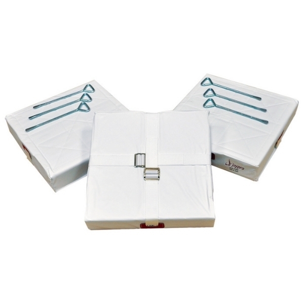 - 3 foam-filled bases with heavy-duty quilted covers, straps and anchors