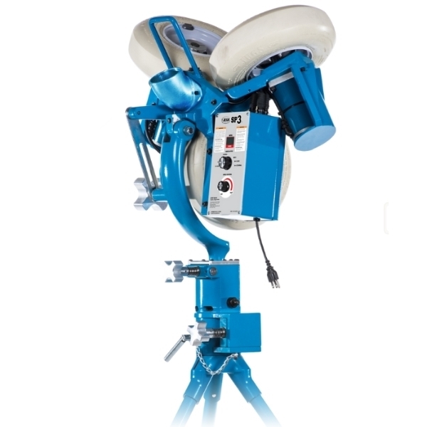 SP3 Baseball Pitching Machine delivers black-to-black accuracy, 8 pitch types at the turn of a dial and speeds from 25–90 mph with pinpoint pitch targeting. Comes standard with Long Feed Chute.