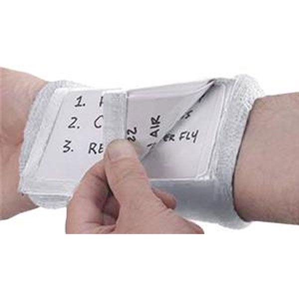 Soft, absorbent terry cloth 6.5" x 4" wristband. Single holder with sewn on hinged double holder with Velcro closure. 4.75" x 2.75" clear to envelope. 2.5" x 4,75" secondary window. Play cards included.